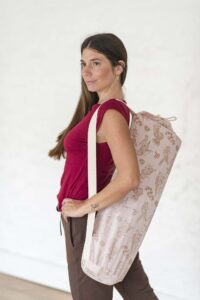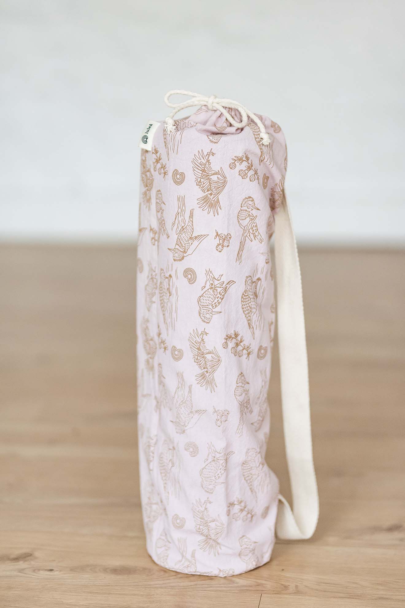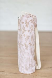 El porta mat luleå es cómodo y bien amplio para guardar tu mat y llevar tu toalla o una segunda remera para cambiarte. Se ajusta desde unos de sus extremos con un cordón y trae una tira ancha para llevarlo colgado a tus actividades. Está confeccionado en una lona de algodón resistente, de fácil lavado. Viene full estampa Frutos del Bosque en serigrafía artesanal con tintas al agua.