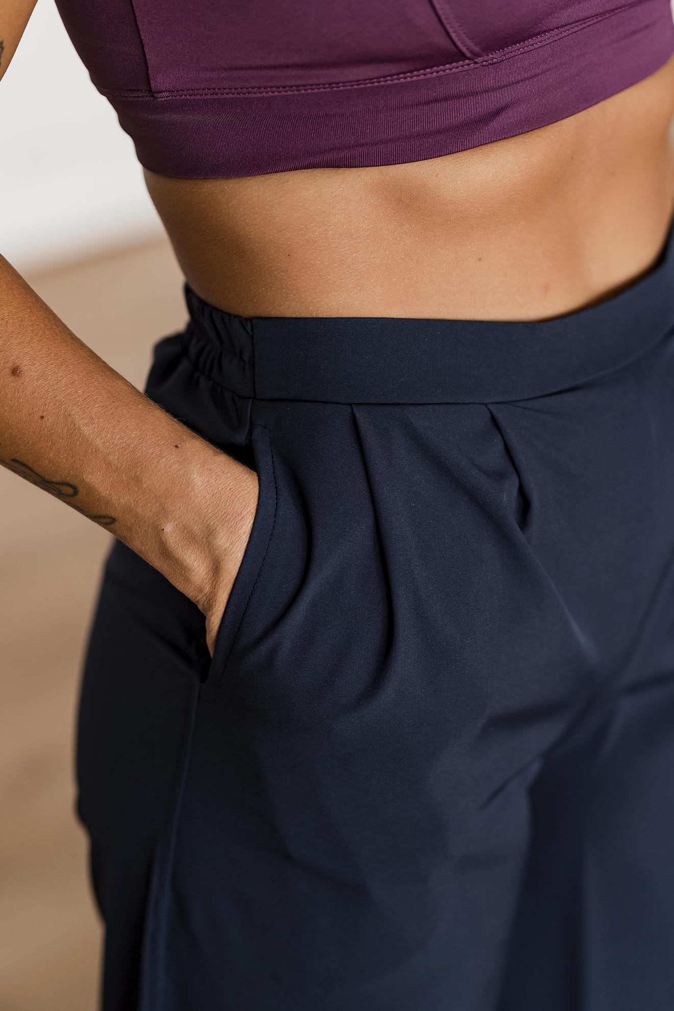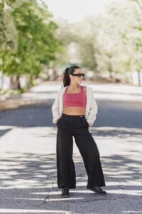 Su tela es microfibra con spandex, lo que la hace liviana e ideal para usarlo sobre shorts o calza, para ir del trabajo a tu práctica, y de ahí adonde sea!