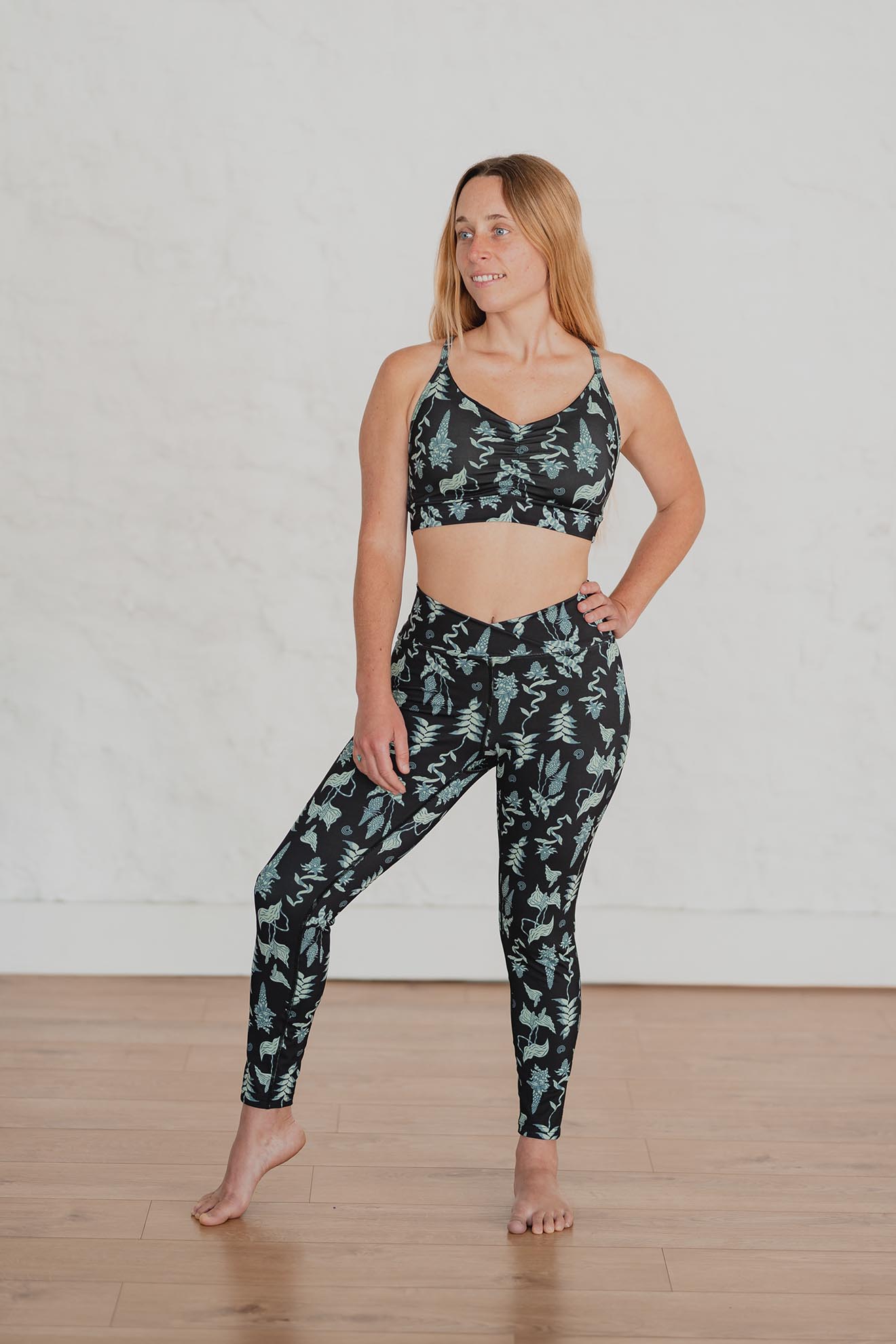 Legging diseñada específicamente para prácticas de movimiento. Es larga hasta el tobillo y tiene su cintura cruzada en el frente y sin elástico, para que ni las sientas al moverte, además de ser un detalle hermoso.