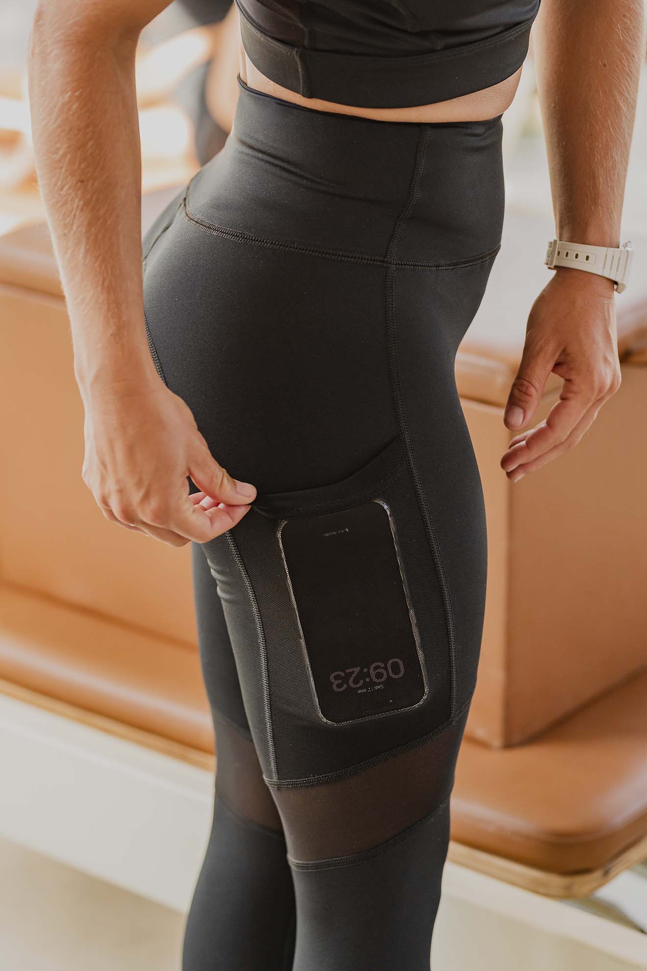 Legging diseñada específicamente para prácticas de movimiento, larga hasta el tobillo y con cintura alta. Trae bolsillos y recortes en las piernas de microtul elastizado en el mismo tono. Está pensada para que te acompañe en todos tus movimientos, permaneciendo siempre en su lugar, y confeccionada con costuras planas, suaves por dentro y por fuera para no marcar tu piel.