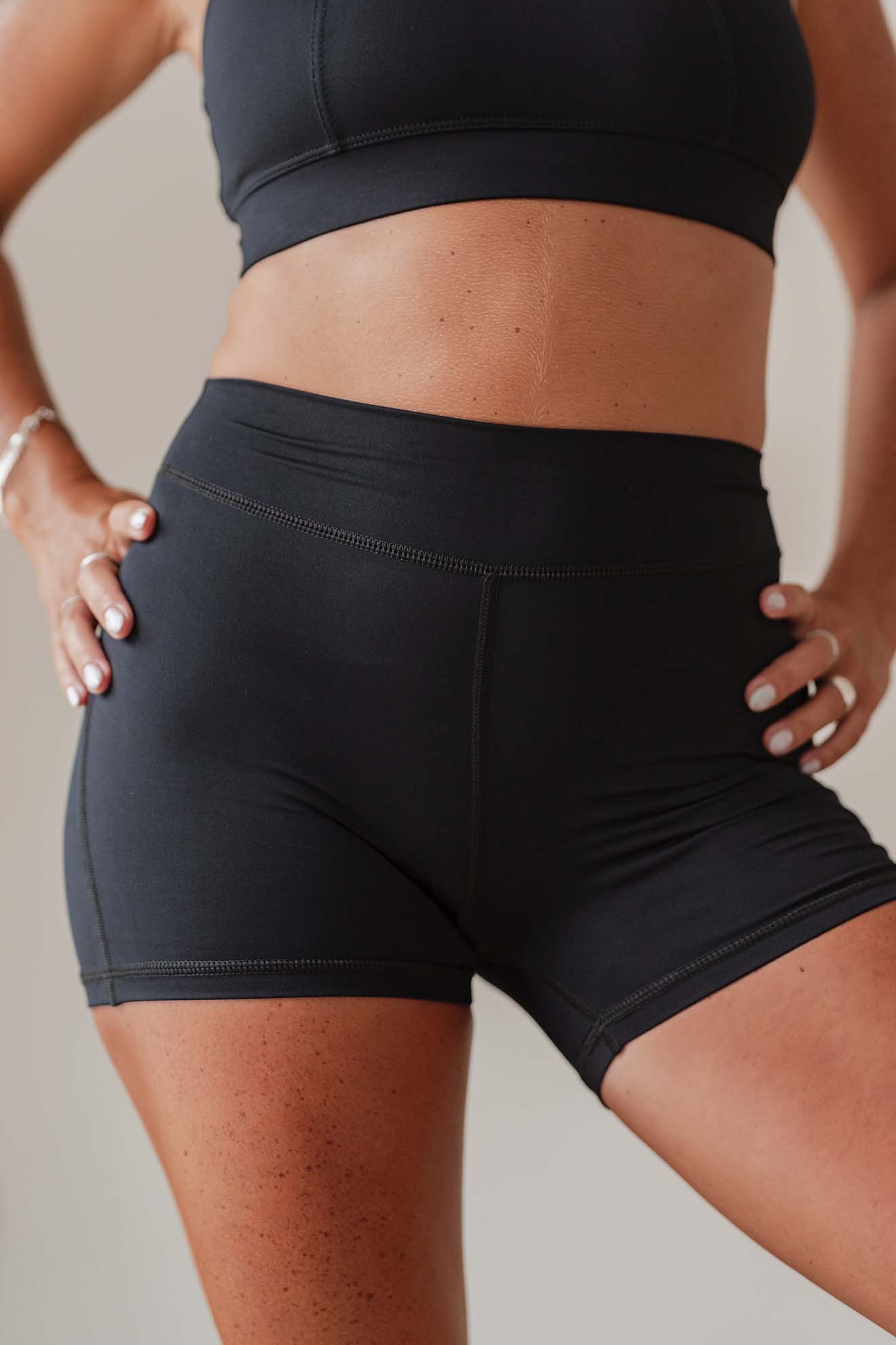 Short con cintura súper alta y costuras planas por dentro y por fuera, para que ni las sientas al moverte. Está diseñado para prácticas intensas donde el cuerpo genera mucho calor. El largo de las piernas lo vuelve fresco y cómodo en la práctica, y lo suficientemente largo para ir y venir de tus actividades.