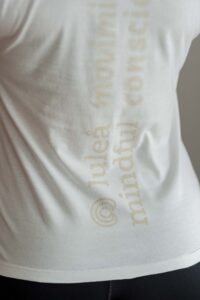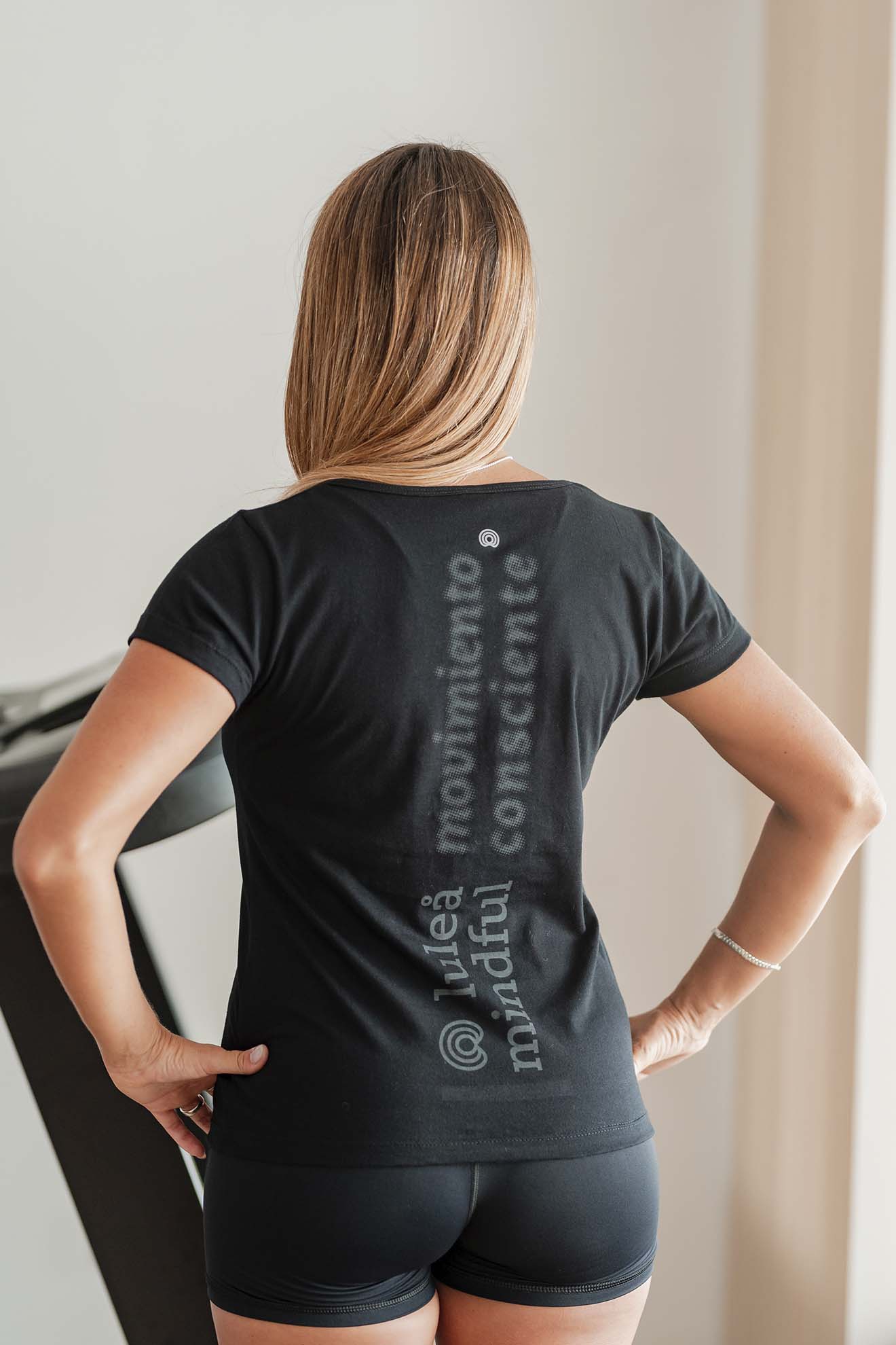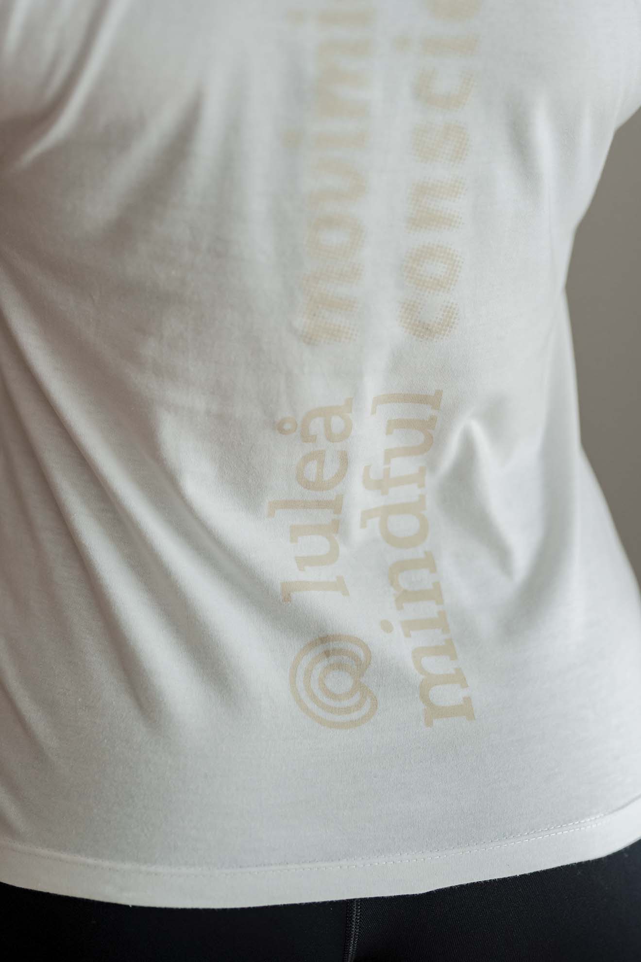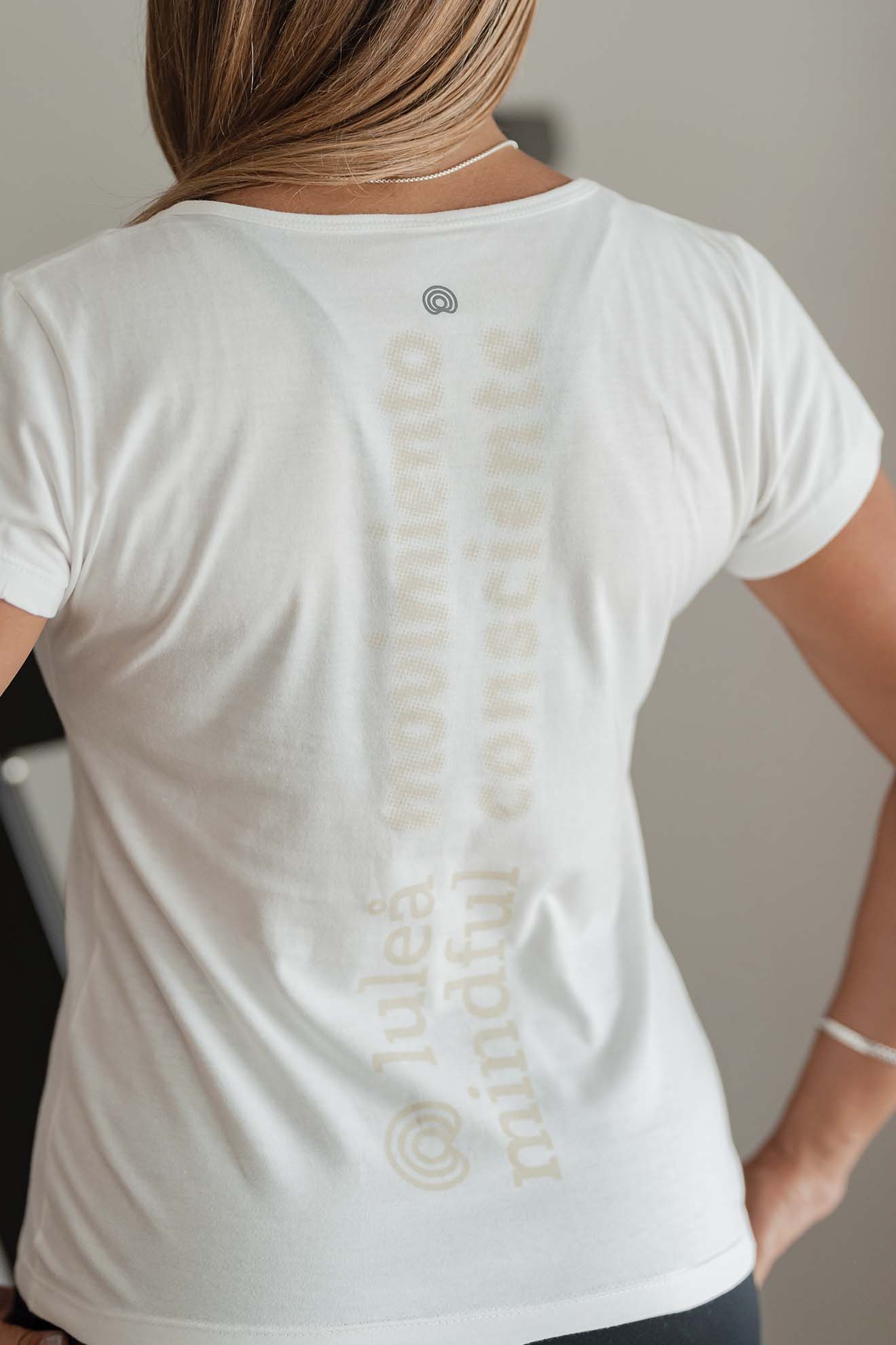Remera de corte bien relajado levemente entallada y con escote en forma de “V” Es larga hasta la cadera y trae la estampa “luleå mindful” en su espalda.