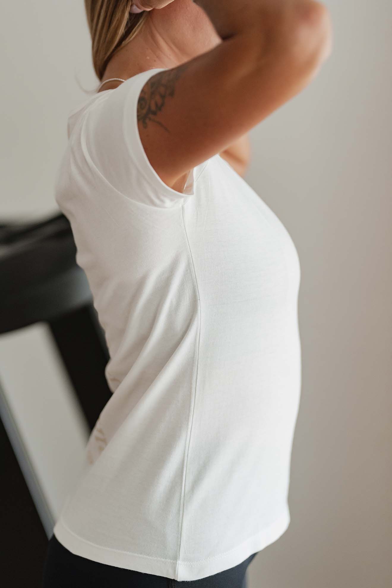 Está confeccionada íntegramente en jersey de algodón, un tejido respirable y suave al contacto con la piel.