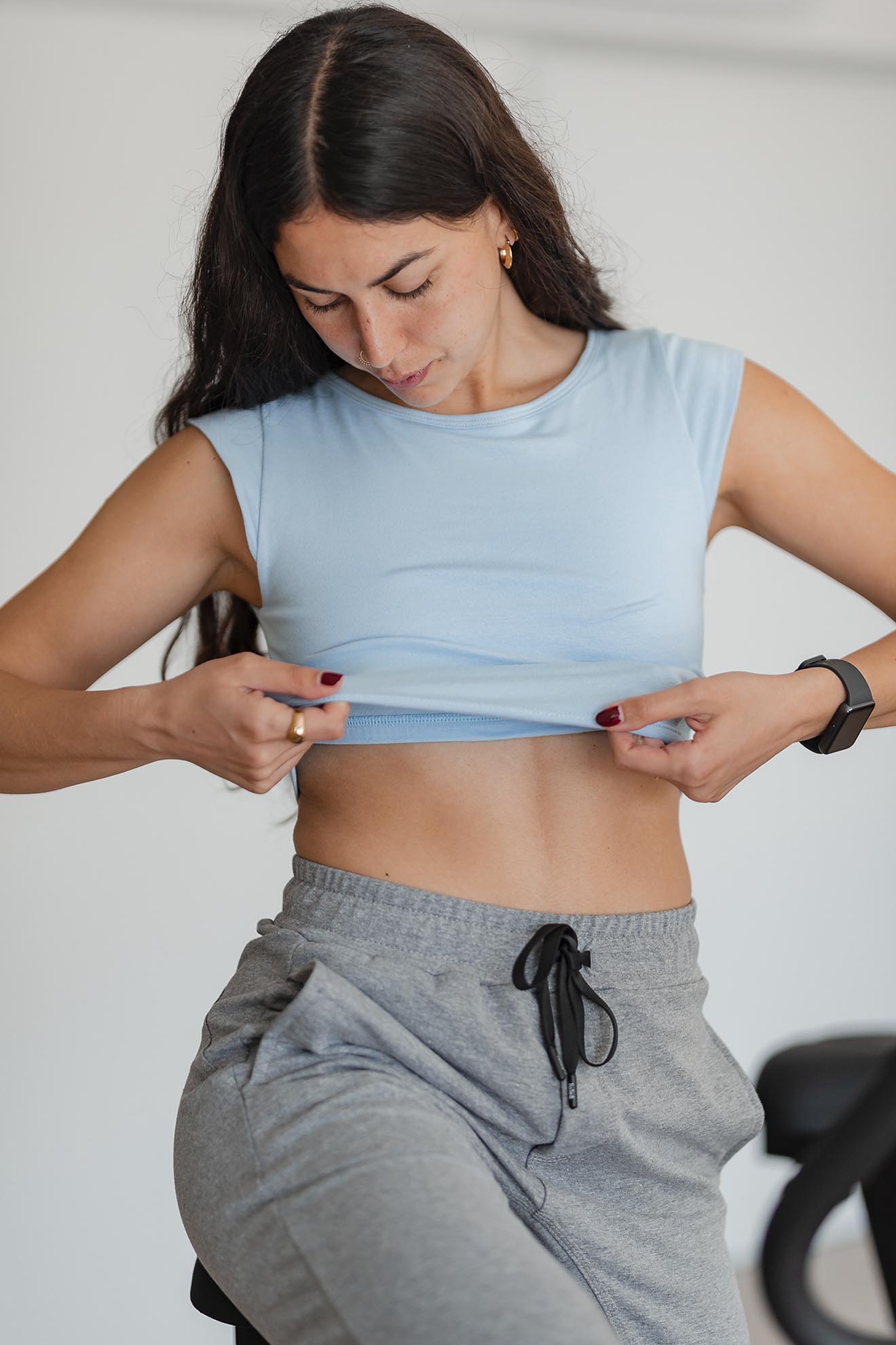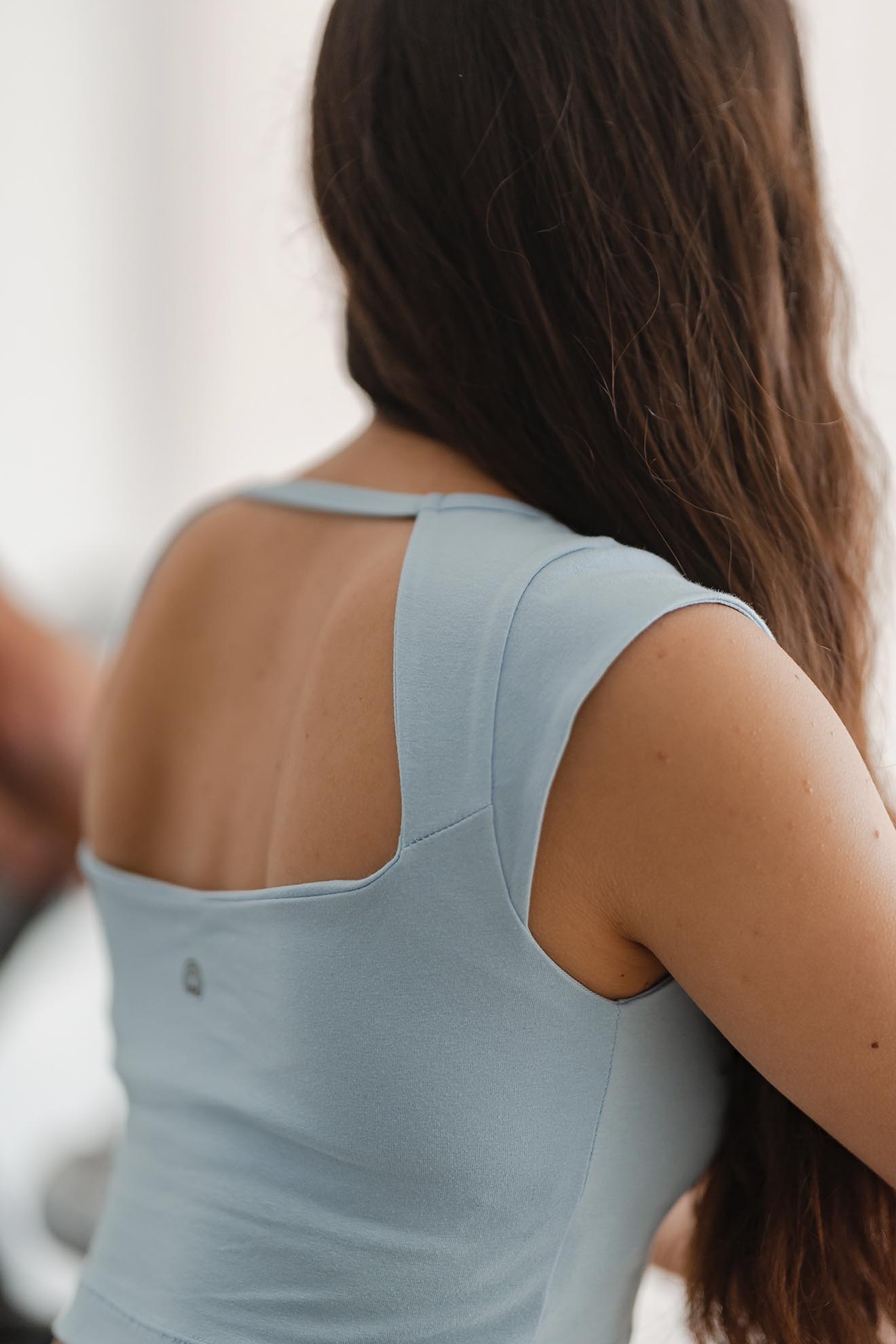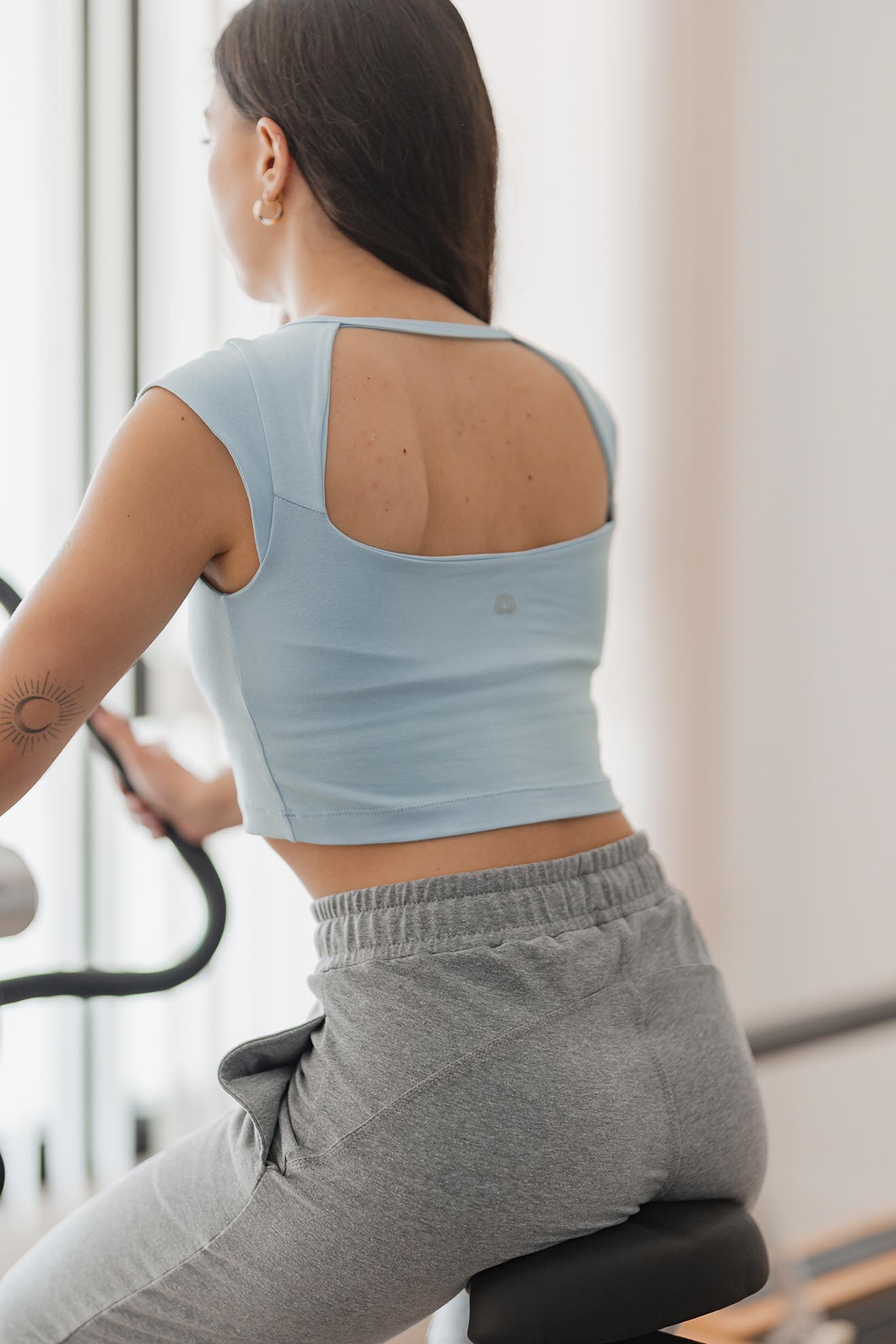 Pensado específicamente para la práctica física: te permite moverte libremente, quedando siempre dónde debe estar. Brinda la comodidad y sostén de un Top, pero viste como una remera. Confeccionado en algodón elastizado.