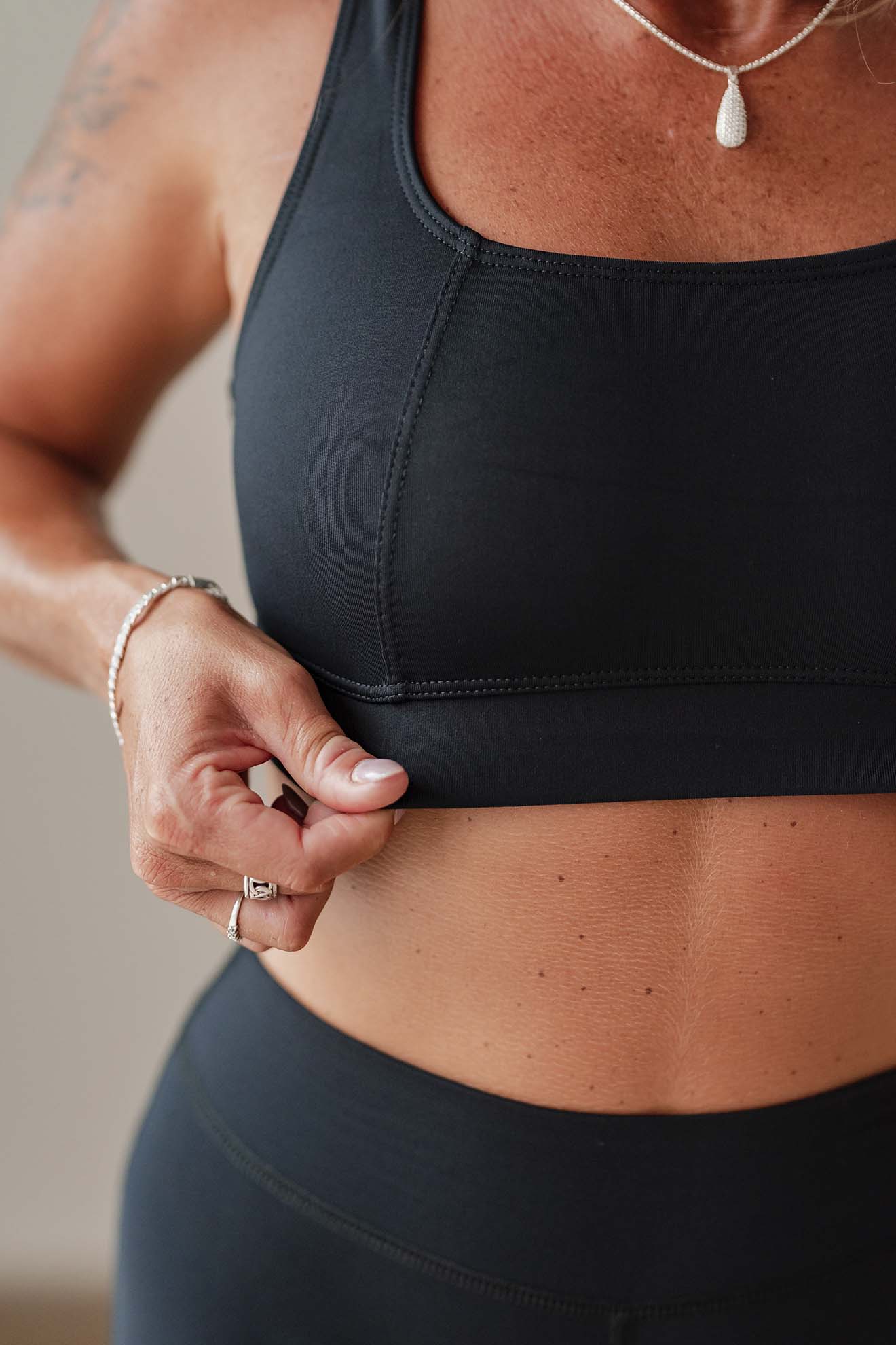 Top diseñado para la práctica de actividades de movimiento, con escote cuadrado y detalles de costuras en su delantera para dar mayor soporte y comodidad.
