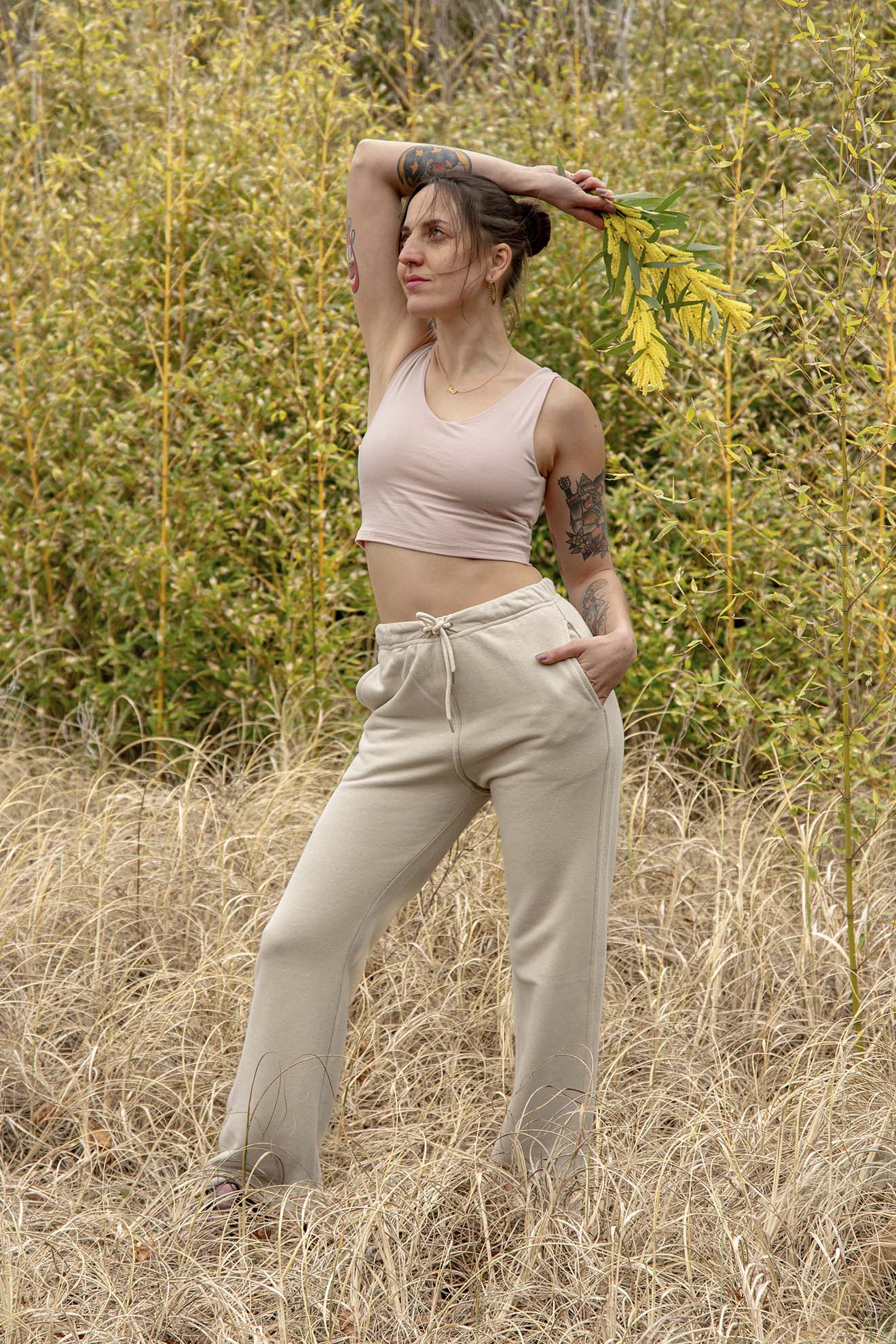 Yoguineta larga de botamanga recta. Trae bolsillos amplios y cómodos, y cintura elastizada con tiras para ajustar. Es súper cómoda, ideal para usar todos los días en todas tus actividades. Está confeccionada en rústico de algodón, una tela muy suave y confortable sobre la piel.