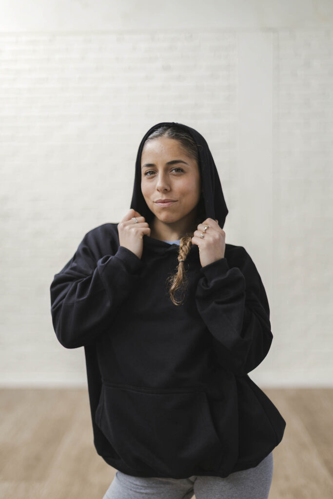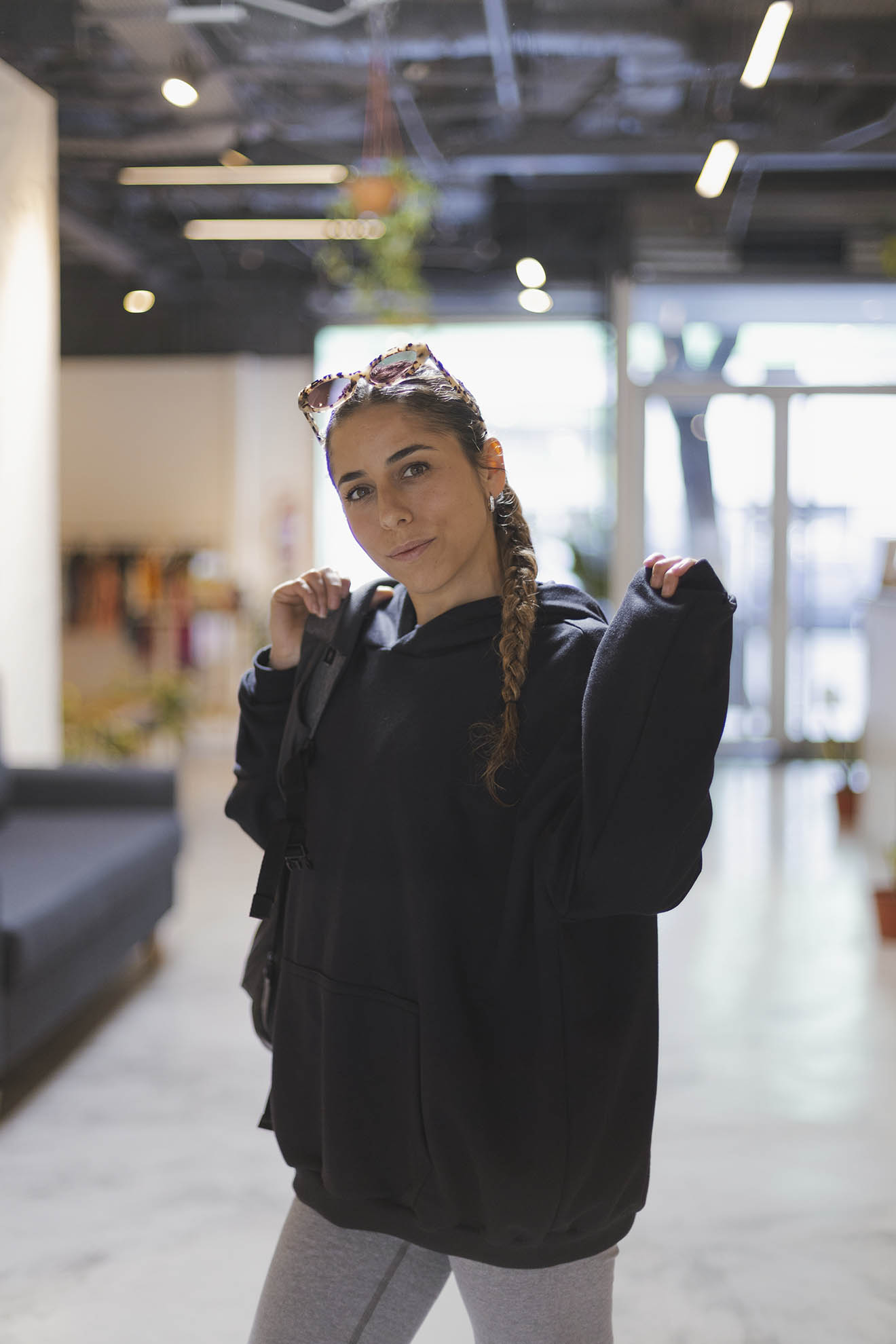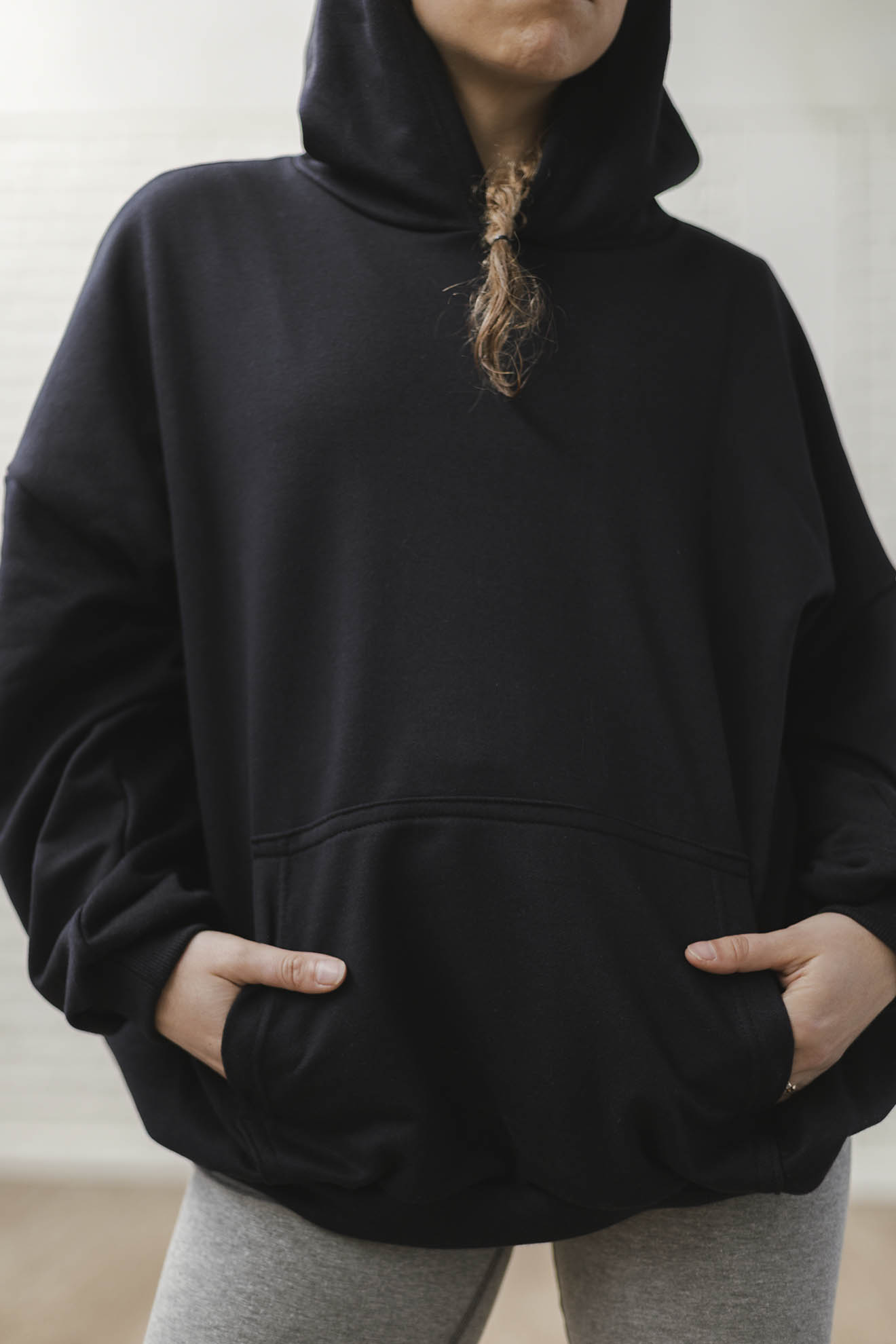 Buzo oversize de corte amplio y relajado. Es un diseño ideal para acompañarte en cada momento del día para abrigarte con estilo y comodidad. Tiene un bolsillo canguro y capucha para brindarte más abrigo.