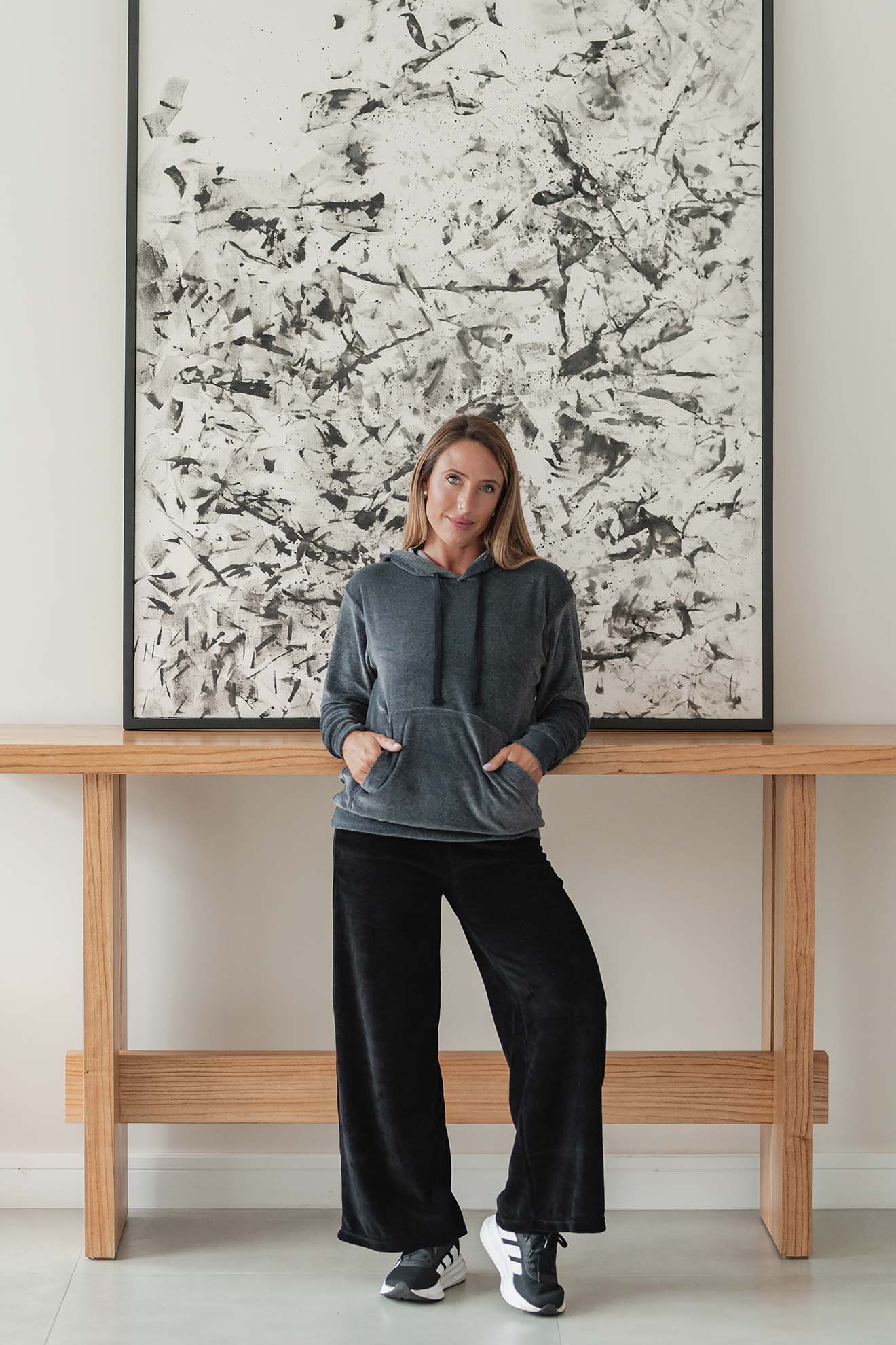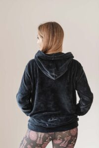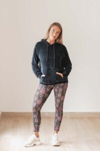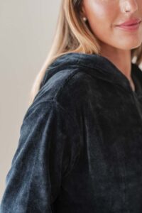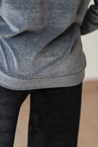 Tela: Está confeccionado en Plush 100% algodón de alta calidad, un tejido liviano, suave y confortable al contacto con la piel. Su textura es similar al terciopelo. Abriga y cede para acompañar el movimiento.