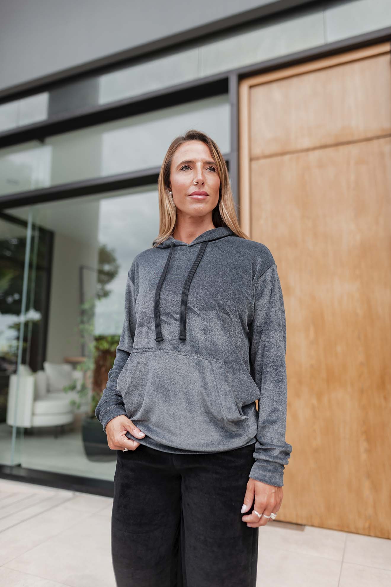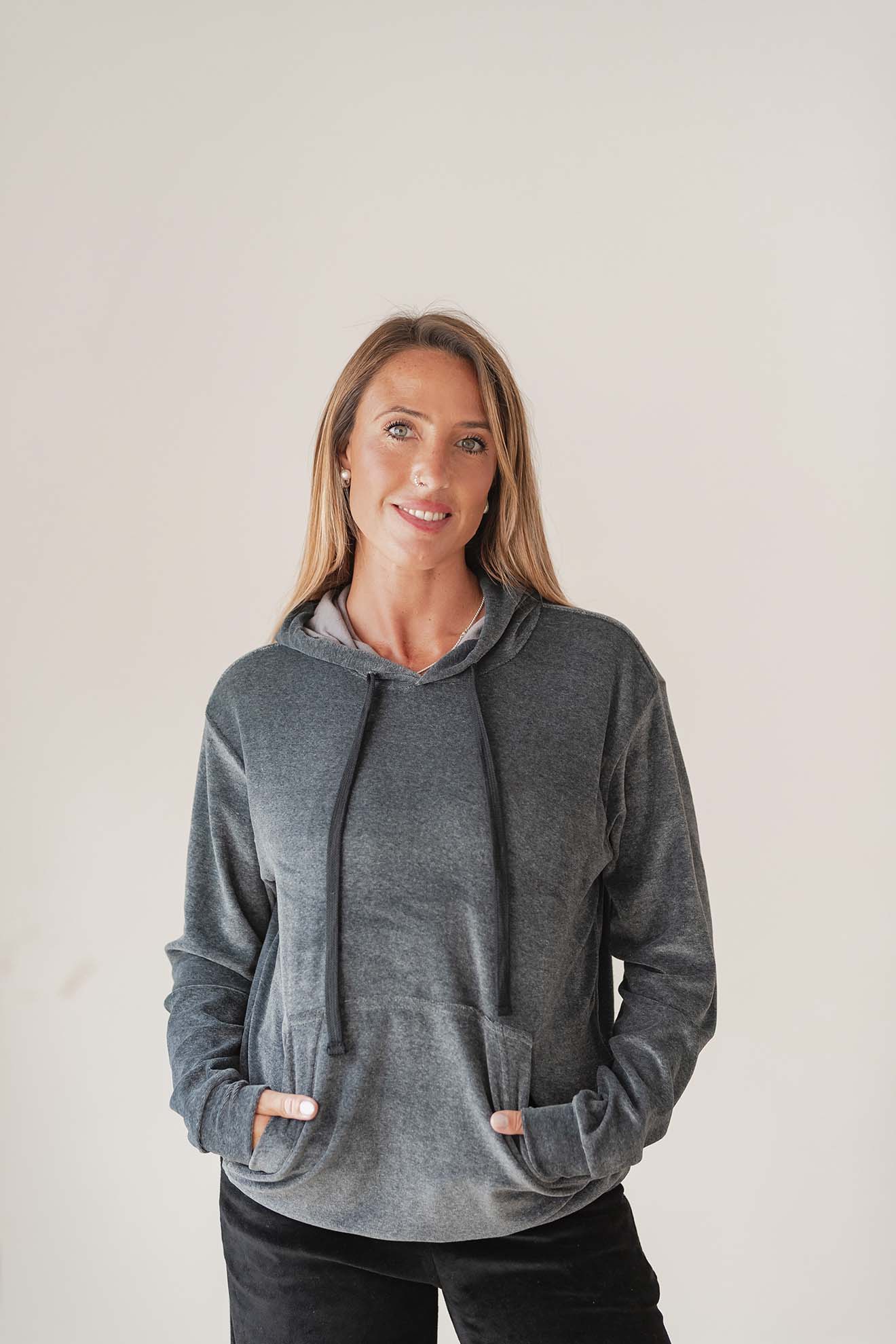 Hoodie de corte clásico, cómodo y bien amplio. Trae capucha forrada y un bolsillo al frente tipo canguro súper práctico.