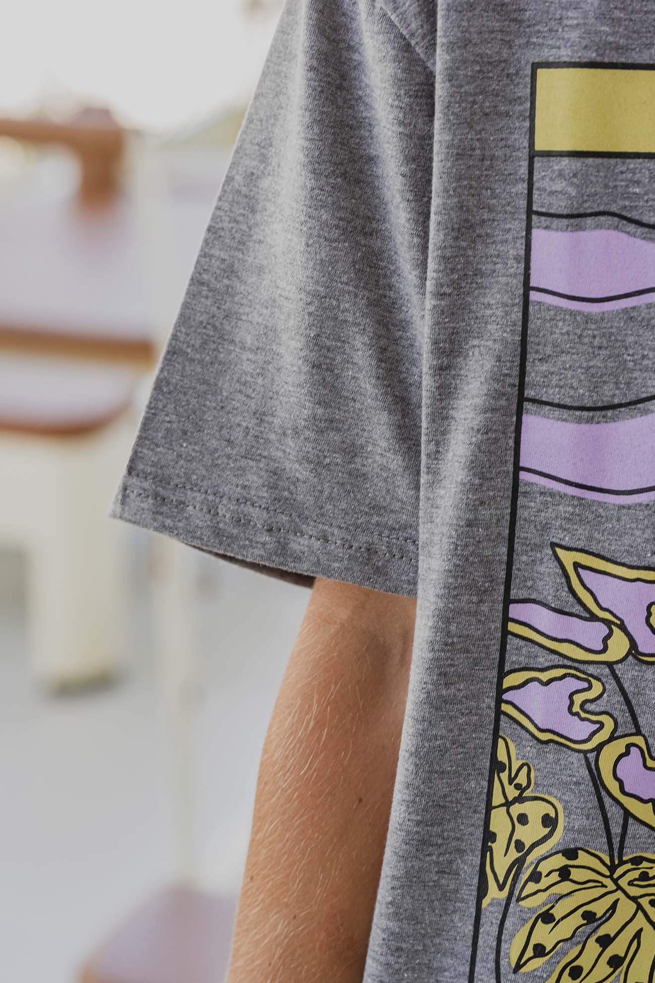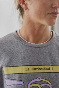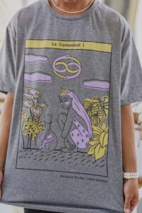 Está confeccionada íntegramente en jersey de algodón, un tejido respirable y suave al contacto con la piel. Trae una estampa hermosa al frente realizada en serigrafía artesanal con tintas al agua.