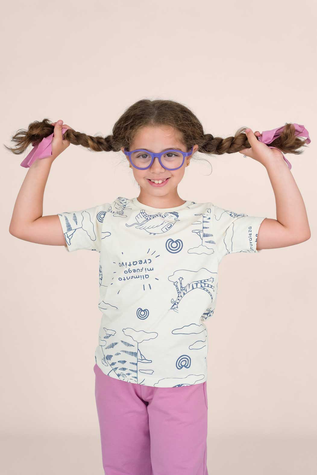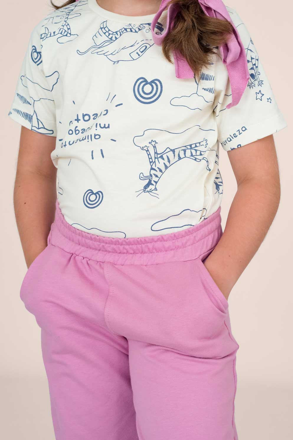 Remera 100% algodón, una fibra natural suave y respirable, ideal para uso diario. Corte clásico, cuello redondo, larga a la cadera. Su estampa está realizada en serigrafía artesanal con tintas al agua, ilustrada por Mercedes Calo.