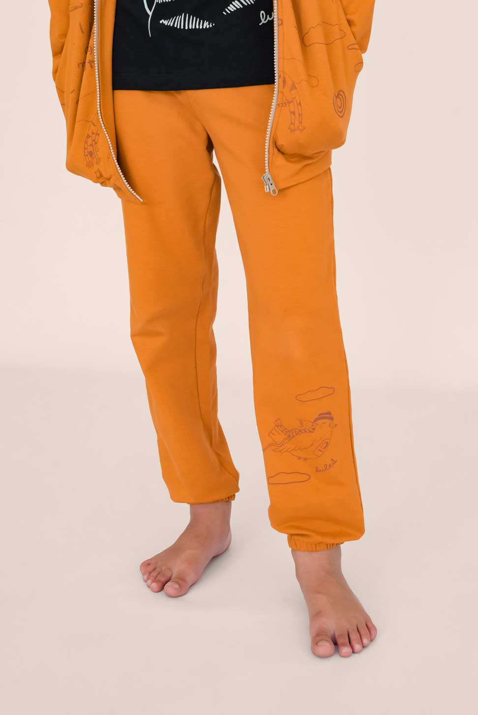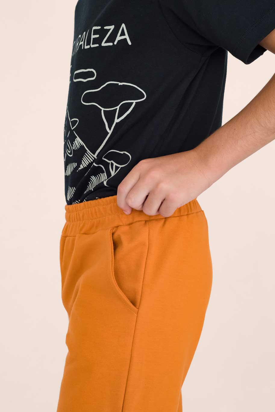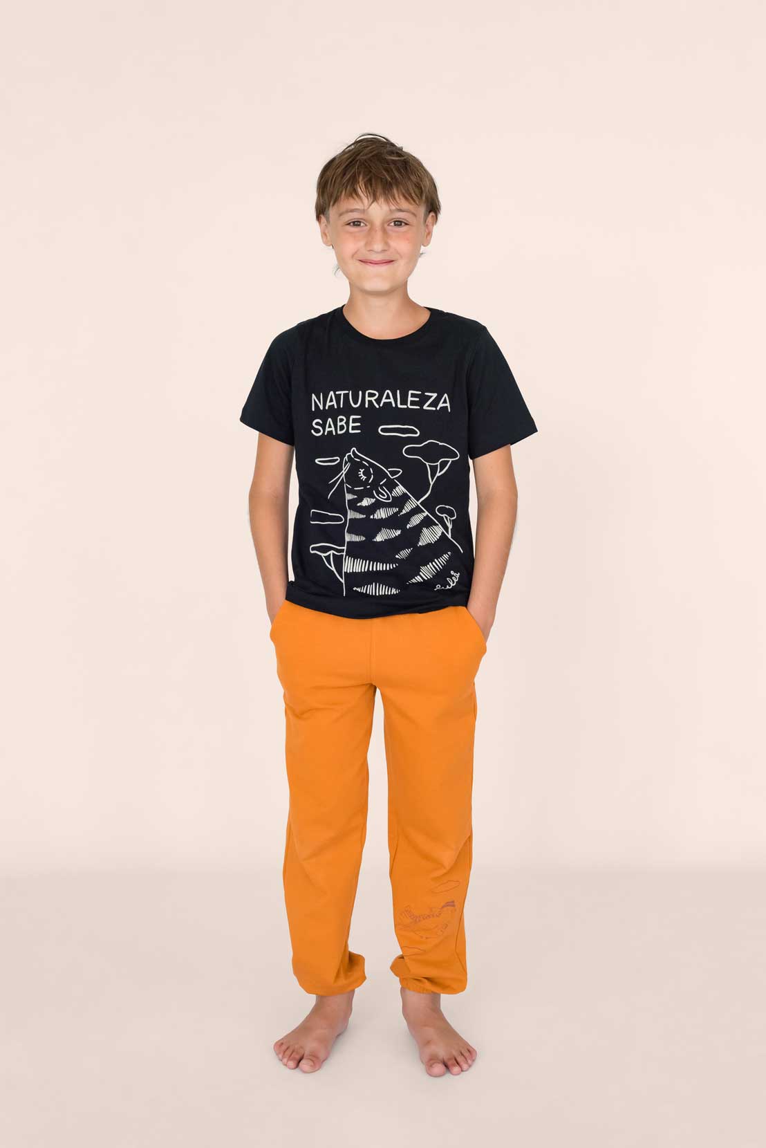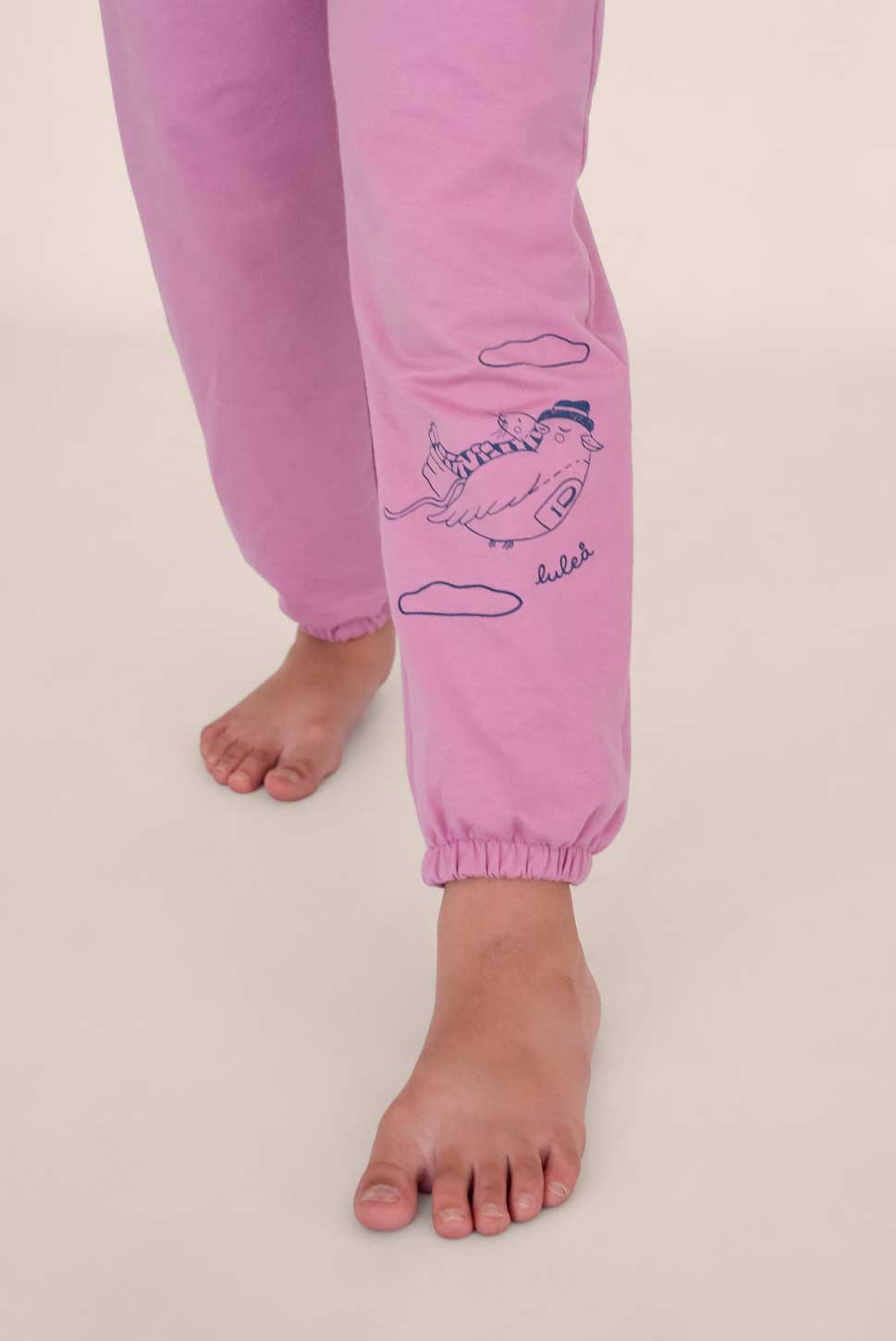 Yoguineta súper cómoda con elástico en la cintura y puño en el tobillo para acompañar en todos los juegos y posibilitar el movimiento libre. Trae bolsillos muy prácticos y está confeccionada en algodón elastizado lo que la hace súper flexible. Es ideal para pieles sensibles por ser una fibra natural. Trae una estampa en la pierna realizada en serigrafía artesanal con tintas al agua, ilustrada por Mercedes Calo.